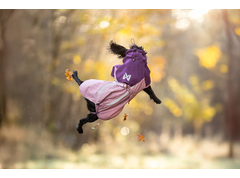 Als uw hond deze jas draagt, kan hij nog steeds onbeperkt op volle snelheid rennen. Het schoudergedeelte is verbeterd voor een nog betere pasvorm. Dankzij het grote aantal maten (van 24 tot 90) en verstelbare sluitingen bij het hoofd, de nek en de staart sluit de jas goed aan op het lichaam. Een grote kraag beschermt de nek.