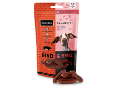 Honden krijgen die onweerstaanbare, onschuldige blik wanneer ze salami ruiken. Elke hondenbezitter kent dat maar al te goed. Helaas zijn de ingrediënten van salami niet geschikt voor hen. Maar geen enkele trouwe viervoeter zou zonder genot moeten leven! Daarom hebben wij SALAMETTI ontwikkeld. Extra vers vlees en orgaanvlees, aangevuld met waardevolle vitaminen, worden met een korte ingrediëntenlijst omgetoverd tot een favoriete snack. De smaakvolle worstjes zijn de snelste weg naar de salamihemel. Dankzij hun zachte textuur zijn de zacht gedroogde SALAMETTI ook geschikt voor puppy’s en senioren.