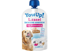 YowUp! L. Casei is de eerste gefermenteerde zuivel in de wereld, die niet koud bewaard hoeft te worden en die miljoenen actieve probiotica bevat, die het immuunsysteem en spijsverteringsstelsel van honden verbeteren. De formule bevat geen toegevoegde suikers, is lactosevrij en bevat 0% vet.